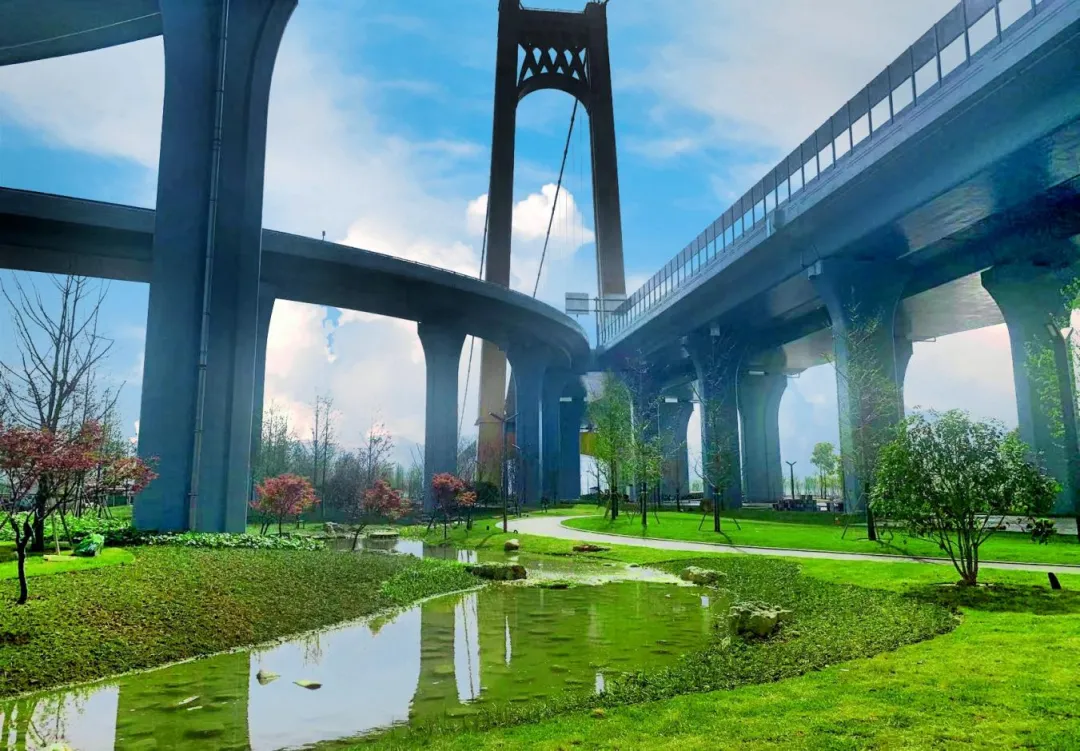 在生态修复上,采用海绵城市技术构建雨水循环系统,利用临江溪污水处理厂每日30万吨中水打造生态湿地,种植乡土植物2万余株。